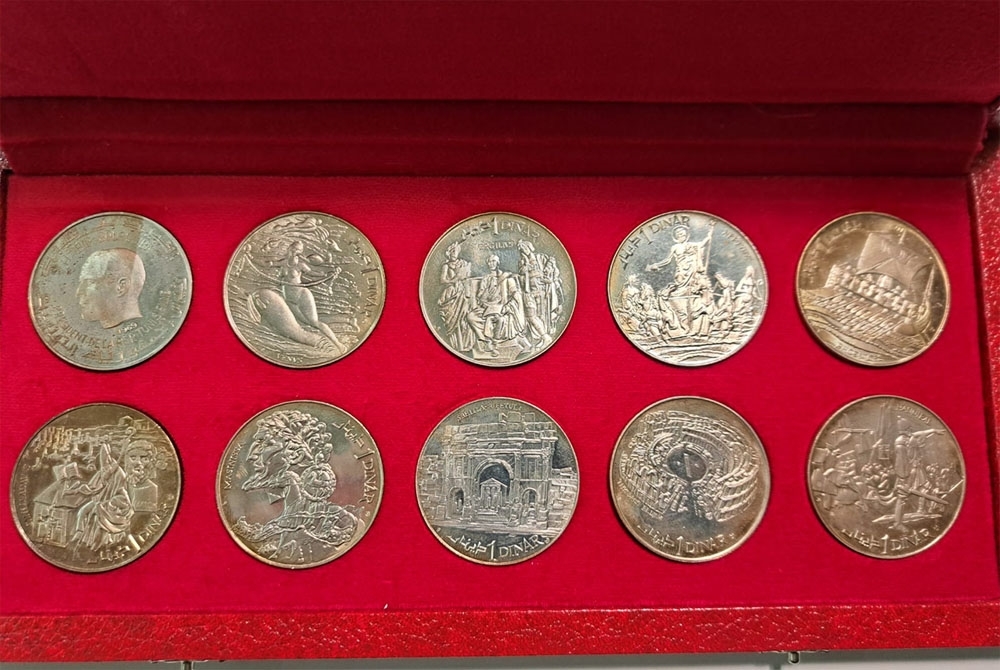 1969 TUNEZ 1 DINAR Estuche 10 Piezas. Cada pieza pesa 20 gramos y tienen una pureza de 925 milésimas. Total plata pura 185 gramos. Presentadas en estuche. FDC