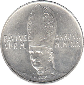 1969 VATICANO 500 LIRAS PABLO VI AÑO VII