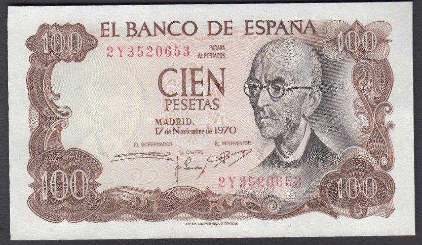 1970. 100 Pesetas. ( Ed. D73a - 472c ). 17 de Noviembre. Manuel de Falla. Con serie.