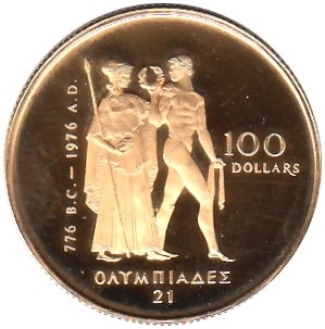 1976 CANADA 100 Dólares OLIMPIADA Atletas. Peso 16,9655 y ley 917 milésimas. Presentada en estuche. PROOF.