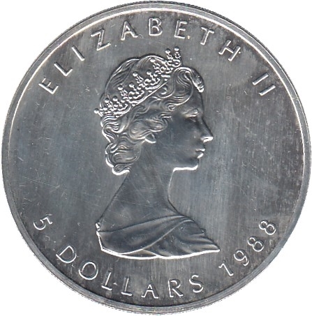 1988 CANADA 5 Dólares HOJA ARCE 1 Onza