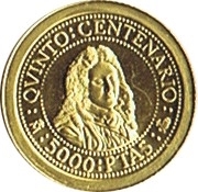 1990 5000 Pesetas. II Serie. Felipe V. Tirada de 4.089 unidades. 1,68 gramos, pureza de 999 milésimas. PROOF