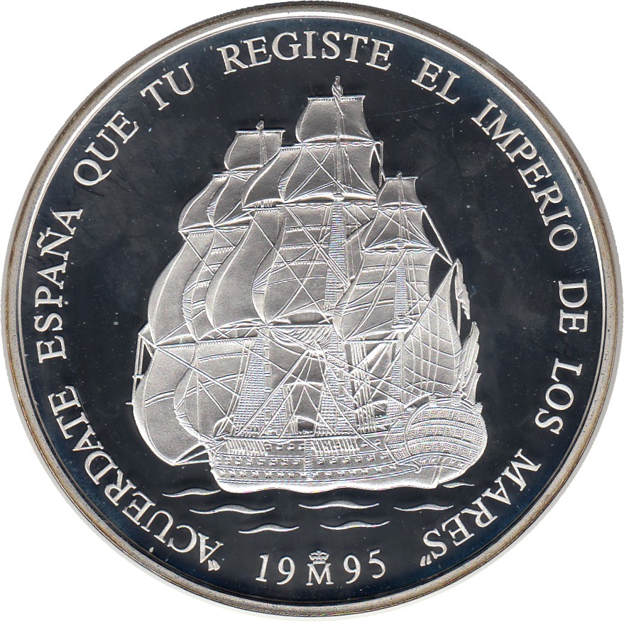 1995 25 ECU Homenaje a la Marina Española. Navío Santísima Trinidad, Alcalá, Galiano, Churruca y Gravina. Tirada de 8.587 unidades. PROOF