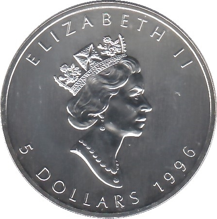 1996 CANADA 5 Dólares - 1 Onza plata Hoja de Arce