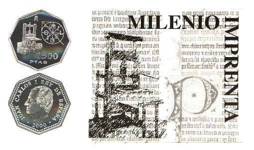 2000 1500 Pesetas Conmemoración del Cambio de Milenio. Descubrimento de la IMPRENTA. Tirada de 19.504 piezas. PROOF