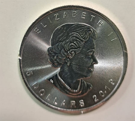 2019 CANADA 5 Dólares HOJA ARCE 1 Onza Golpecito en canto.