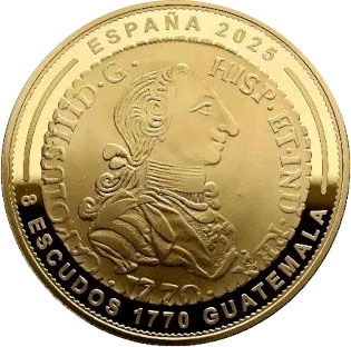 2025 JOYAS del MUSEO de la CASA de la MONEDA. 400 Euros - 8 EscudoS 1770 CARLOS III Guatemala. Tirada máxima de 500 piezas. Oro de 999 milésimas. PROOF