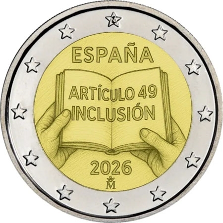 2026 ESPAÑA 2 Euros. Artículo 49: INCLUSION: Protección, Derecho e Inclución ante las discapacidades. Tirada de 1.500.000 piezas. SC