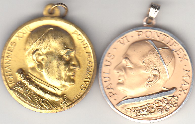 aticano. Lote 2 medallas con aro: Pablo VI y Juan XXIII.